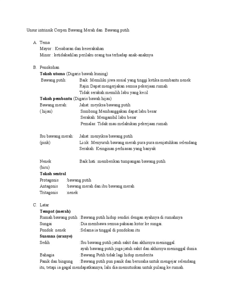 Unsur Intrinsik Cerpen Bawang Merah Dan Bawang Putih Pdf